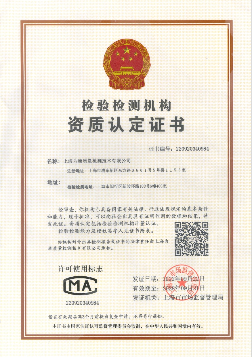 Copyright 2020上海為康質量檢測技術有限公司 滬ICP備09093922號-5 技術支持by集錦科技
