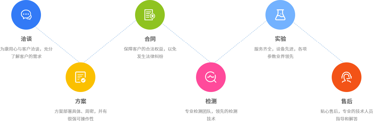為康檢測專業化、標準化的服務體系,良好的心理素質,服務人員專業職業素質,制定并明確服務的標準,為康檢測6S 服務原則。